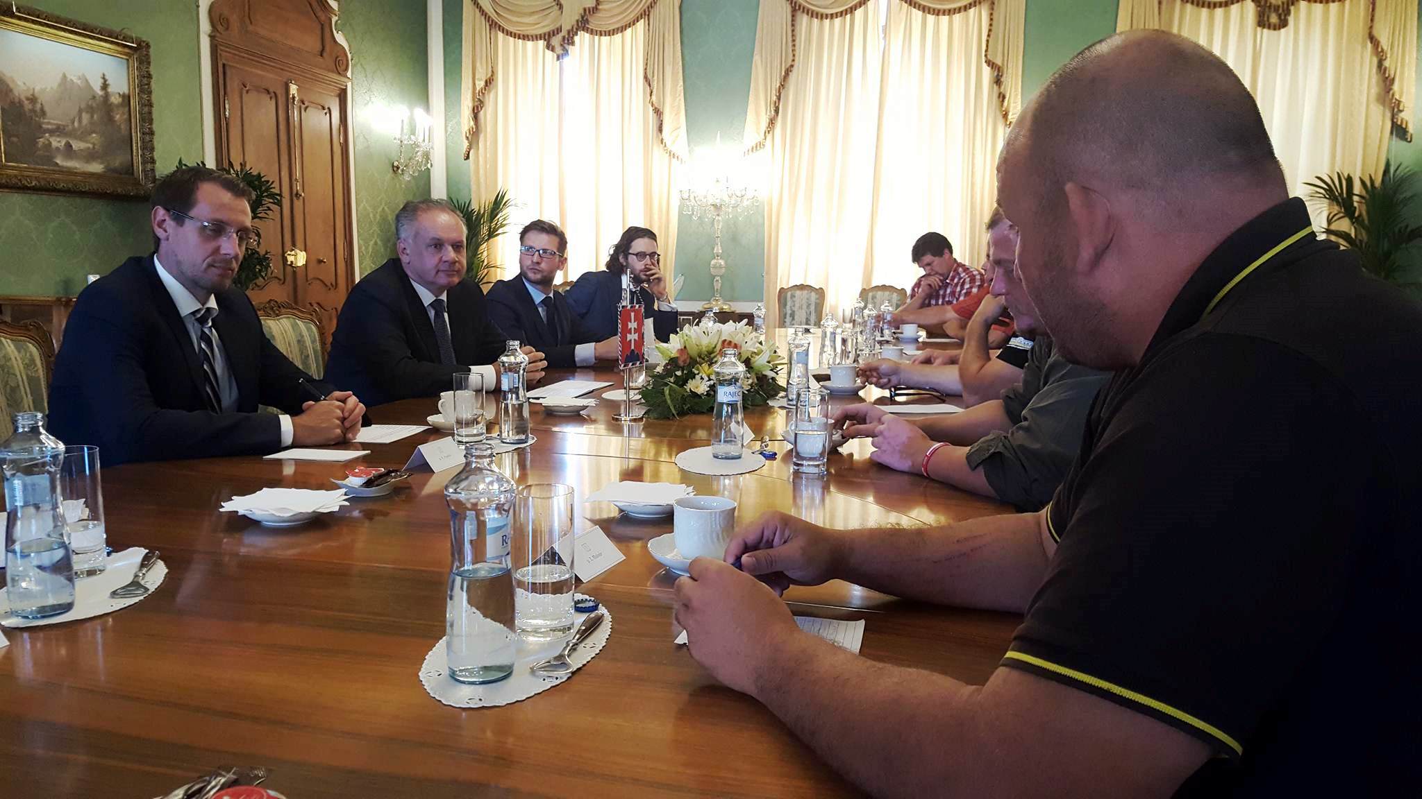 14:07 – Andrej Kiska a tüntetés szervezőivel találkozik az elnöki palotában