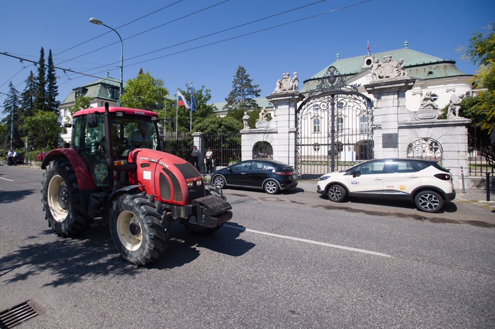 Egy órás menet után a 33 fokos tűző napon 5 traktor és 100 gazda megérkezett a mezőgazdasági minisztérium elé, de Gabriela Matečná nem kívánt kijönni közéjük, csak néhány fős delegációjukkal akart tárgyalni. A gazdák ezt elutasították, mert nem bíznak Matečnában,