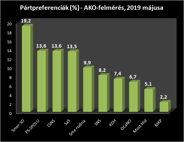 Ha a héten tartották volna a parlamenti választásokat, azt a Smer nyerte volna 19,2 százalékkal. A legnagyobb kormánypárt továbbra sem tudja magát feljebb tornázni – a választásokat 28 százalékkal nyerték meg 2016-ban.