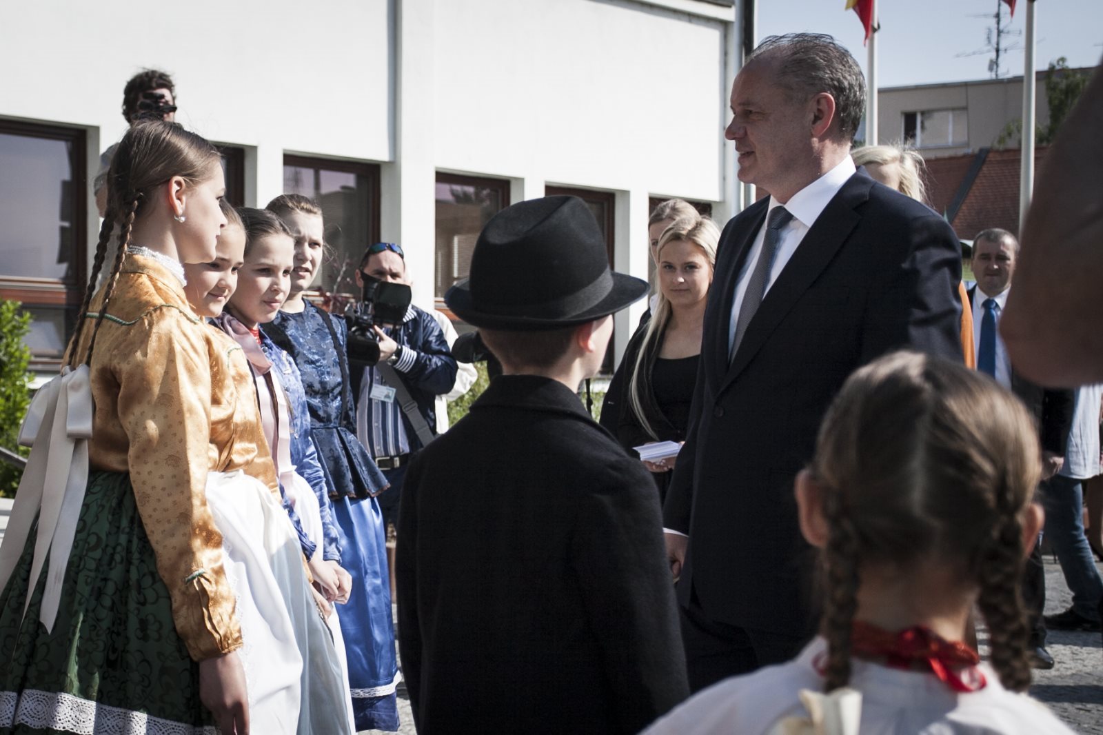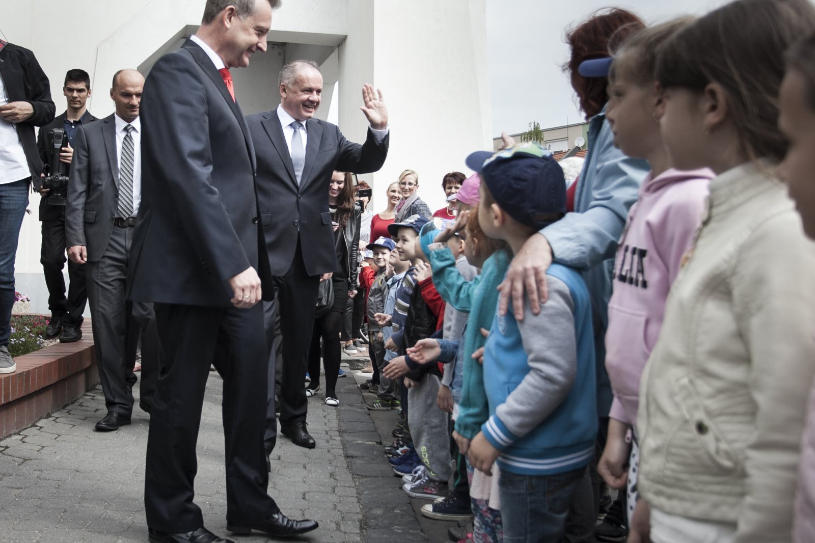 A legkisebbek is kijöttek üdvözölni az elnököt.