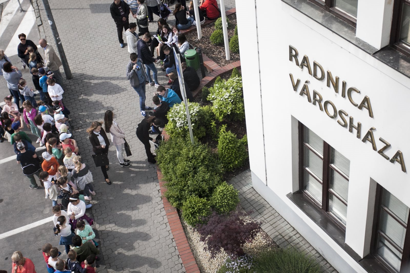 Kiskára várakozók a városháza előtt