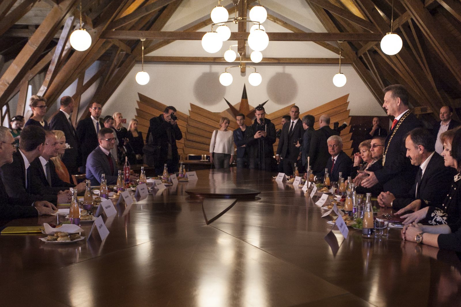 A köszöntés a városháza üléstermében folytatódött. A Makovetz Imre által tervezett impozáns beltér Kiska csodálatát is kiváltotta.