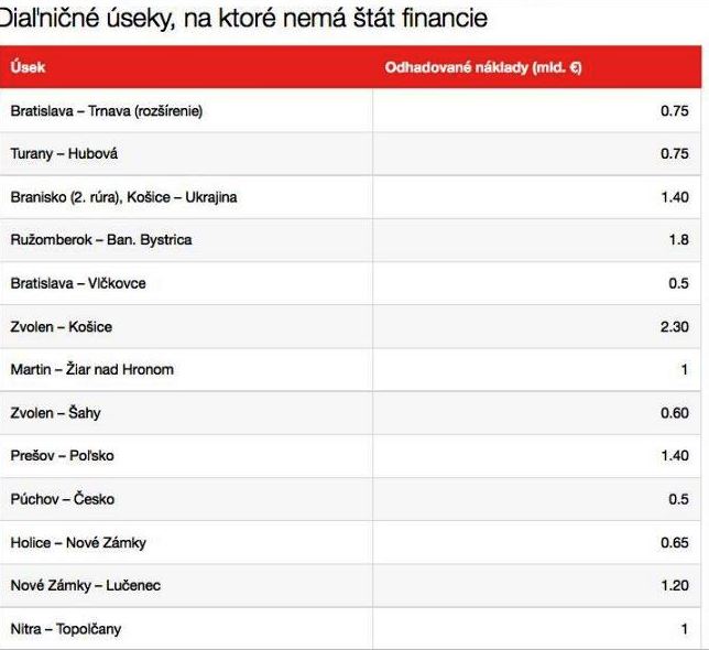 Az útépítésre szánt források elfogytak, a közlekedésügyi minisztérium pedig nem tudja, honnan szerezzen támogatást anélkül, hogy ne nehezítse meg még jobban az állam dolgát. Elképzelhető tehát, hogy jó ideig a 2020-ra tervezett új autópálya-szakaszok lesznek az utolsók Szlovákiában.