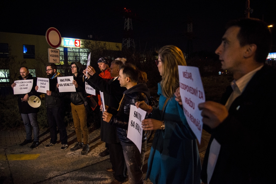 Már csaknem éjfél volt, amikor Mečiar elhagyta a televízió székházát, de még mindig voltak tüntetők az épület előtt. Az egykori kormányfőt, aki szerint eddig nem kapott elég teret a médiában, hogy megvédje magát a vádakkal szemben, most két tucat újságíró várta, mégsem válaszolt a kérdésekre. A tüntetők közben azt skandálták: „Szégyen”.