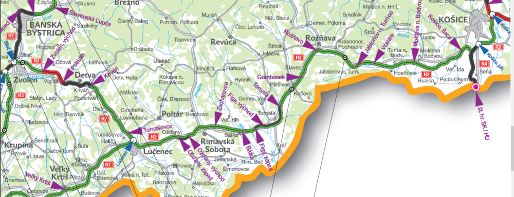A Zólyomot Kassával összekötni hivatott R2-es gyorsforgalmi út 230 kilométeres szakaszából mindössze 40 kilométer készült el eddig. A nyomvonala keresztül halad a leghányatottabb sorsú magyarlakta járásokon Losonctól, Rimaszombaton és Rozsnyón át Kassáig.