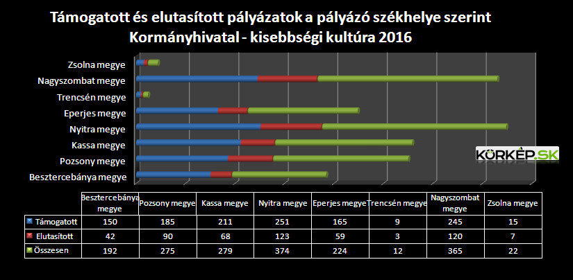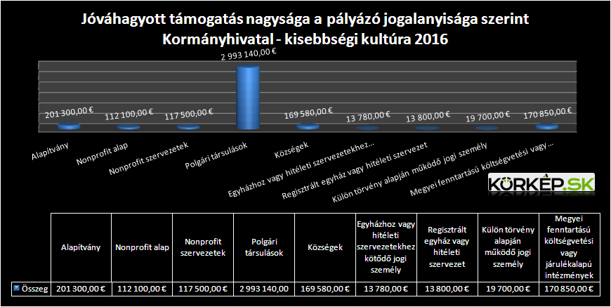 Az említett, közel négymillió eurós keret fele a szlovákiai magyarság kulturális programjait volt hivatott támogatni. A keretből a második legtöbbet a romák meríthették, 664 152 eurót (17 százalék), utána a ruszinok (8 százalék) következnek.