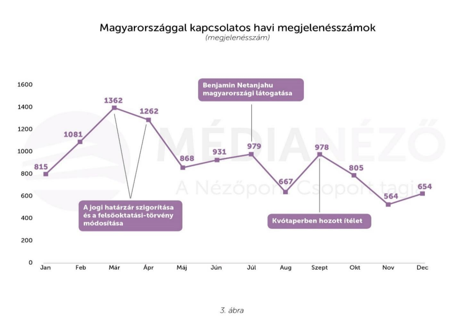 A legkedvezőtlenebb médiakép 2017 áprilisában alakult ki Magyarországról. Az említett hónapban 652 negatív hangvételű írásra 597 semleges és mindössze 7 pozitív cikk jutott. Ennek hátterében a Lex CEU-ként elhíresült felsőoktatási törvény beterjesztése állt.
