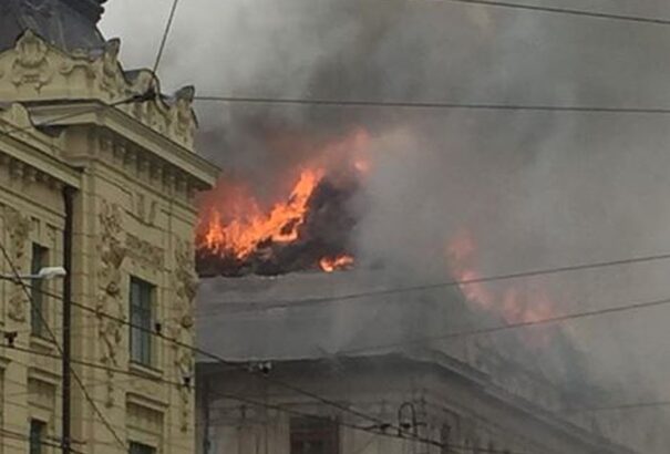 Lángol az adóhivatal épülete Kassa történelmi központjában – videó