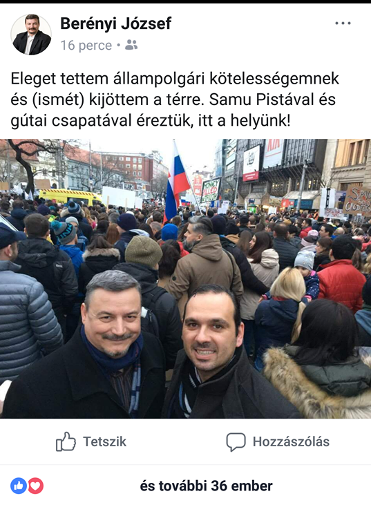 18:24 – Több MKP-s, köztük Berényi József és Samu István is részt vettek a pozsonyi tüntetésen