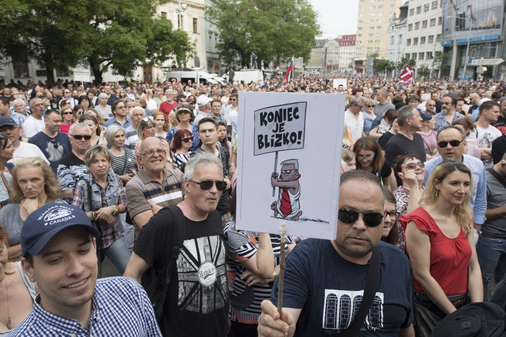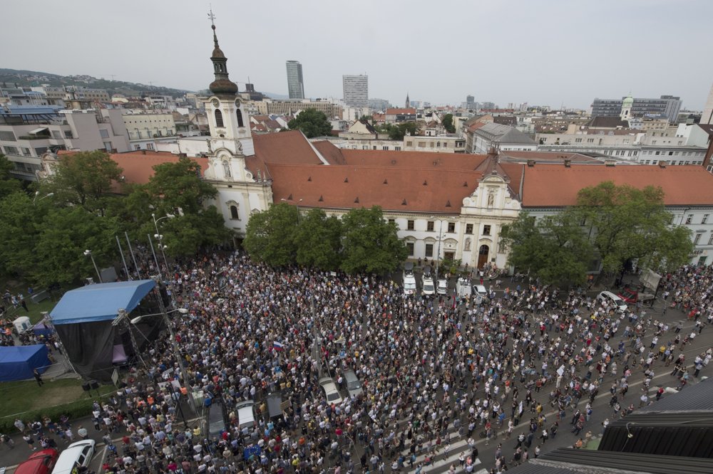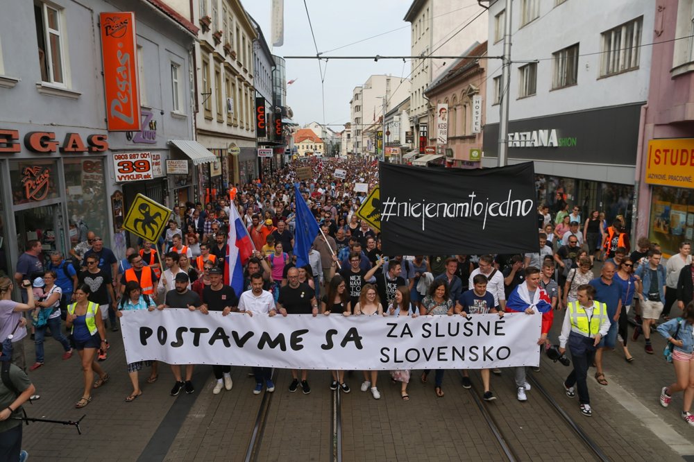 „Már kilenc hete annak, hogy meggyilkolták Ján Kuciak újságírót és menyasszonyát, Martina Kušnírovát“ – mondta a tüntetés elején az egyik szervező, Juraj Šeliga, majd a színpadon a háttérből felhangzott Jaromír Nohavica Sarajevo című dala, amelyet Ján és Martina az esküvői dalának választott.
