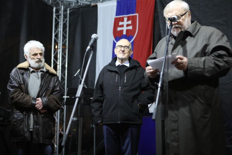 „Ha úgy döntenek, hogy valamelyikünket, mint a tüntetések szervezőit megtámadnak, akkor mindnyájunkkkal meggyűlik a bajuk” – mondta Táňa Pauhofová színésznő, majd hozzátette „Nézzenek ránk, mi együtt vagyunk. Nem vágyunk hatalomra, de Szlovákia jövője fontos számunkra. Itt, a téren nem a névtelenek manipulálható tömege áll”.