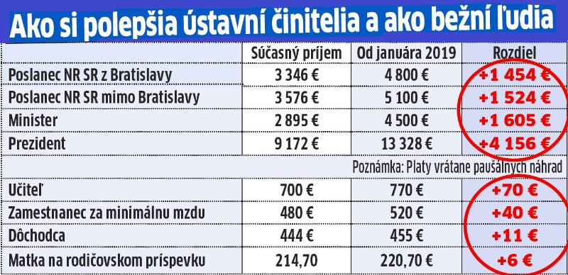 A szlovák parlamenti képviselők karácsonyi ajándéka igencsak nagyvonalúra sikeredett, hiszen úgy döntöttek, hogy a jövő évtől nem fogják befagyasztani a béreket. 2019 januárjától havonta 1500 euróval vihetnek haza több pénzt.