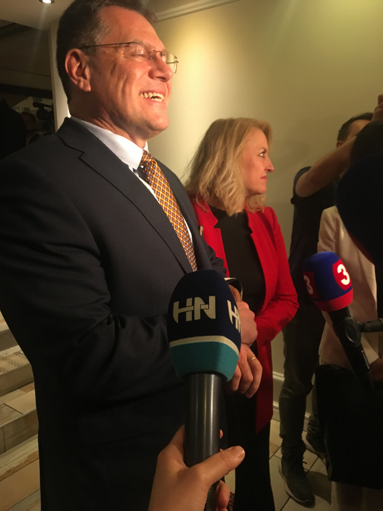 21:35 – Maroš Šefčovič is megérkezett eredményvárója színhelyére, a Loft hotelbe. A médiának adott rövid nyilatkozatában kiemelte, hogy a mai választások eredményeit alázattal fogja elfogadni. (via HNonline.sk)