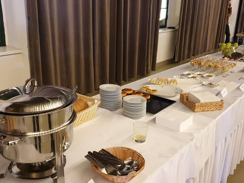 22:23 – Mi a ma esti menü Čaputová eredményváróján, az Öreg Vásárcsarnokban? Stábja nem spórolt a frissítőkön és a finomságokon. Az asztalokon gulyás, hidegtálak, saláták, gyümölcslevek sorakoznak, van kávé és tea, de alkohol egyelőre nincs. (Király Zsolt felvételei)