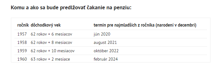 „A munkaügyi minisztérium számításai szerint a nyugdíjkorhatár még a következő öt évfolyamnak növekedni fog, ami azt jelenti, hogy az 1965-ös születésűekkel fog végződni, ugyanis velük fogják elérni a 64. évet“