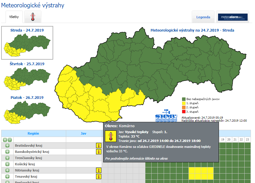 A délnyugati járásokban elsőfokú hőségriadó lesz érvényben a délutáni órákban, Erdőháttól a Nagykürtösi járásig 33-34 fokig is felkúszhat a hőmérő higanyszála. A rendkívüli meleg ráadásul napokig velünk marad.