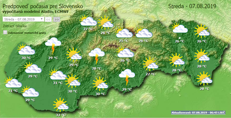 A 65-85 km/órás szél és intenzív, 20-400 mm-nyi csapadékot hozó viharok miatt első fokú figyelmeztetést adott ki a Szlovák Meteorológiai Szolgálat.