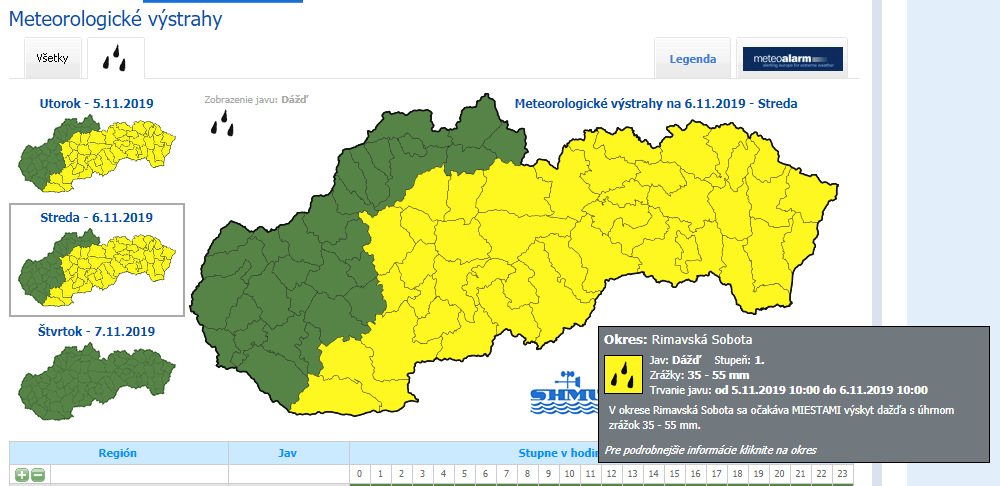 Szerdán napközben is folytatódik az intenzív eső az ország legnagyobb részében. Az északnyugati járásokon kívül mindenhol elsőfokú figyelmeztetést adott a Szlovák Hidrometeorológiai Intézet a csapadék miatt. A Dunaszerdahelyi járástól keletre minden magyarlakta régióban 25-40 milliméternyi csapadék várható.
