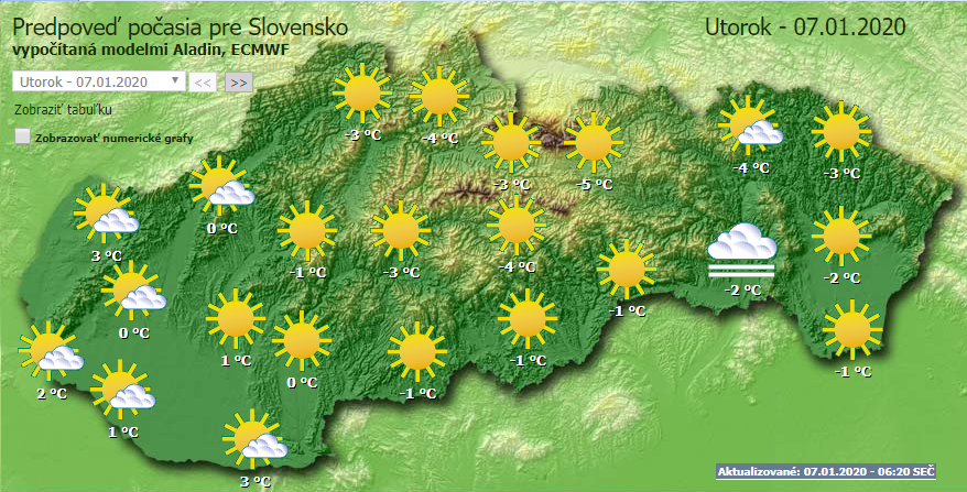 Országszerte többnyire napos idő várható, csak Kassa környékén marad tartós a felhőzet. A hőmérséklet fagypont körül marad déli járásokban is.