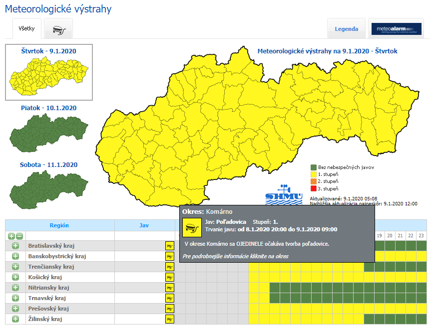 A legmagasabb nappali hőmérséklet 0 és 5 fok között alakul, keleten és Besztercebánya megyében-2 fok lesz a maximumhőmérséklet.