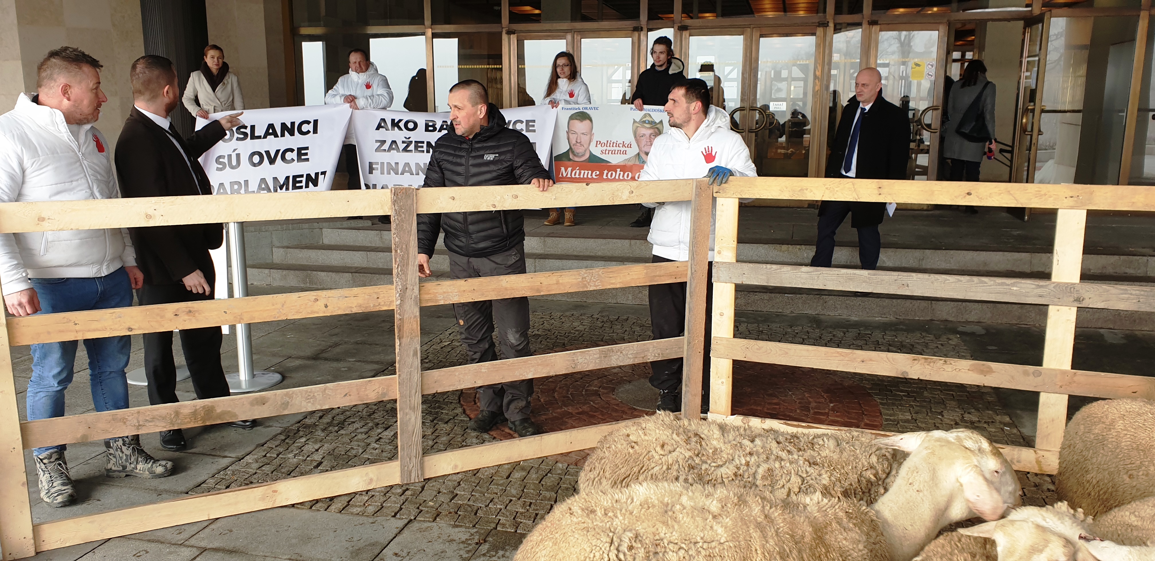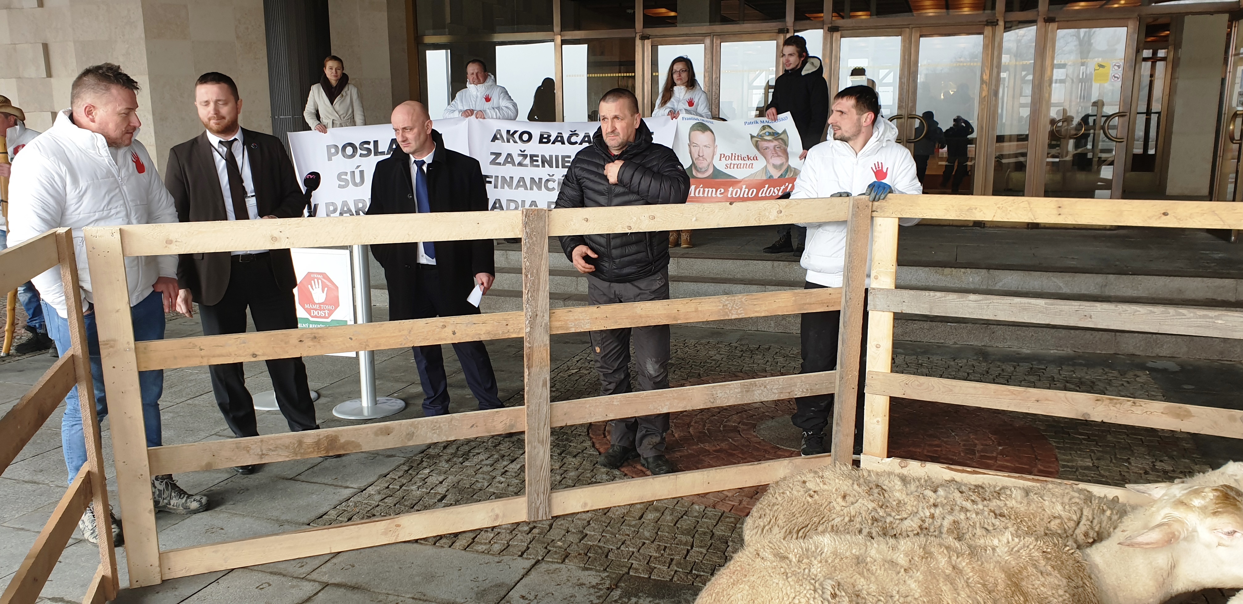 Egy tucat élő birkával vonult fel a Máme toho dosť! gazdapárt a parlament elé mai sajtótájékoztatójukhoz. František Oravec pártelnök és Patrik Magdoško alelnök ezzel illusztrálták, hogy a szlovák törvényhozásban oligarchák által irányított birkák ülnek, akik a kisemberek helyett szponzoraik, a nagy agrobárók érdekeit védik.