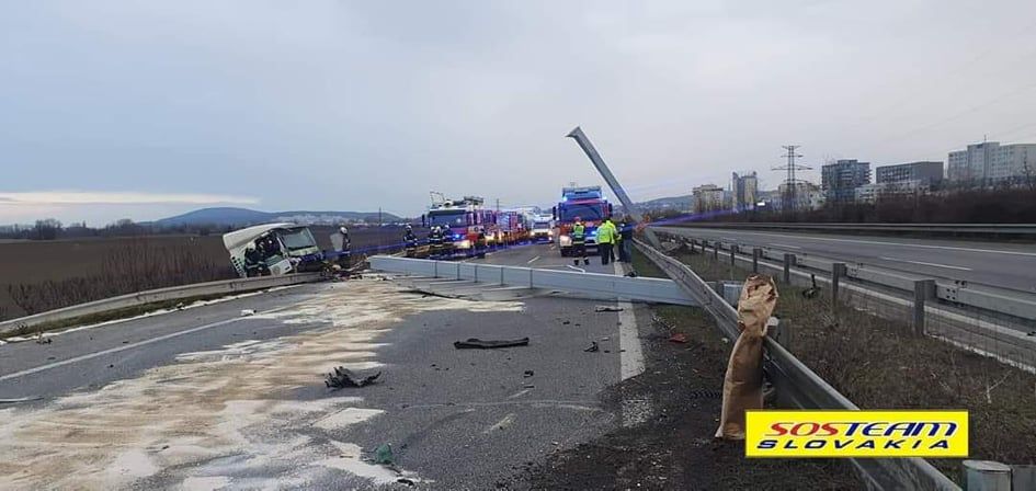 Tegnap reggel a D2-es autópálya 69-es kilométerénél Magyarország felé súlyos kamionbaleset történt, melynek következtében több órára leállt a forgalom.