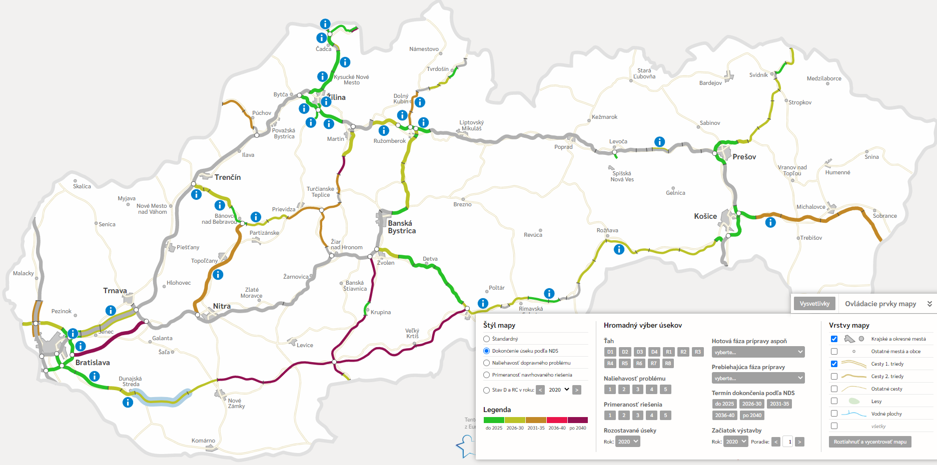 Az INEKO társadalomkutató intézet egy rendkívül hasznos interaktív oldalt tett közzé Szlovákia már befejezett és készülő autópályáiról. Beállítható, hogy az egyes szakaszokat tervezett megvalósulásuk, forgalmi adataik vagy költségeik szerint csoportosítva lássuk térképen ábrázolva.