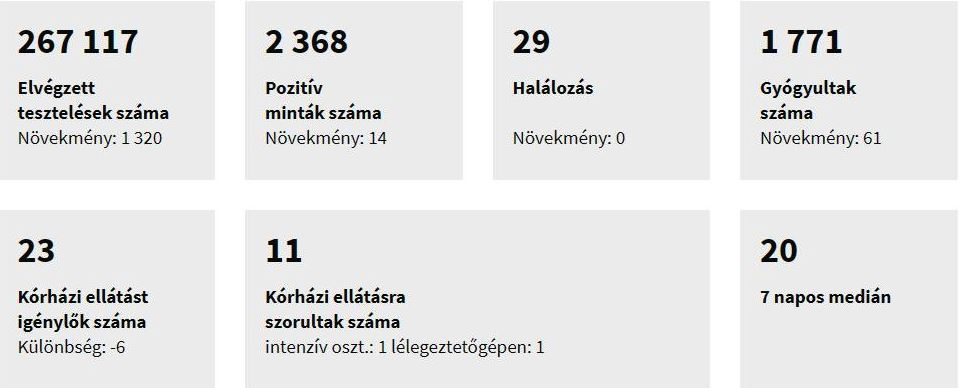 Hétfőn 14 új COVID-29 fertőzöttet mutattak ki a laboratóriumokban végzett tesztelések alapján. Tesztelésből összesen 1320 -at végeztek az elmúlt 24 órában.