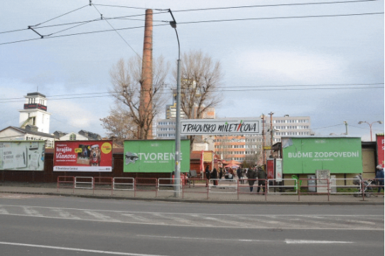 Minden bizonnyal kevés olyan pozsonyi lakos van, aki eddig még nem járt a Miletič utcai piacon. A helyszínre érkezéskor azonban nem egy reprezentatív kapu várja a piacra látogatókat, hanem hirdetőtáblák és óriásplakátok tömkelege. Az esztétikátlan kerítés nemcsak a közterületet bomlasztja meg, de a látogatók és a járókelők figyelmét is elvonja.