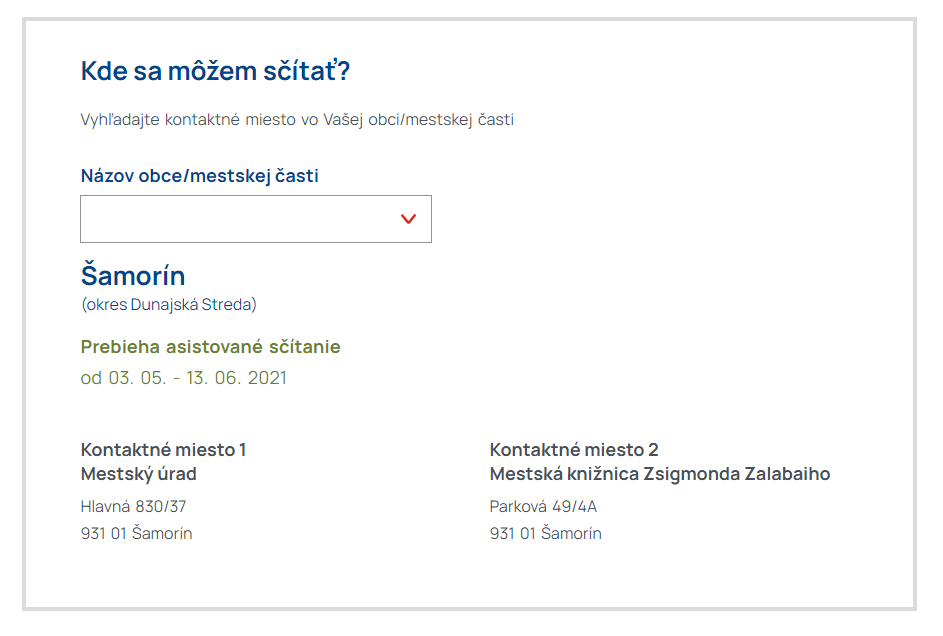 A lakosok a kapcsolattartó pontok jegyzékét és címeit a saját településük honlapján kívül a www.scitanie.sk weboldalon is megtalálják.