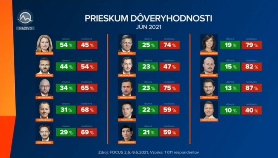 A politikusok megbízhatóságát mérő utolsó Focus-felmérés áprilisban készült. Tehát a jelenlegi felmérés a járványellenes enyhítéseket, a Za ľudín belüli összetűzéseket és Mária Kolíková leváltási kísérletét is tükrözi.