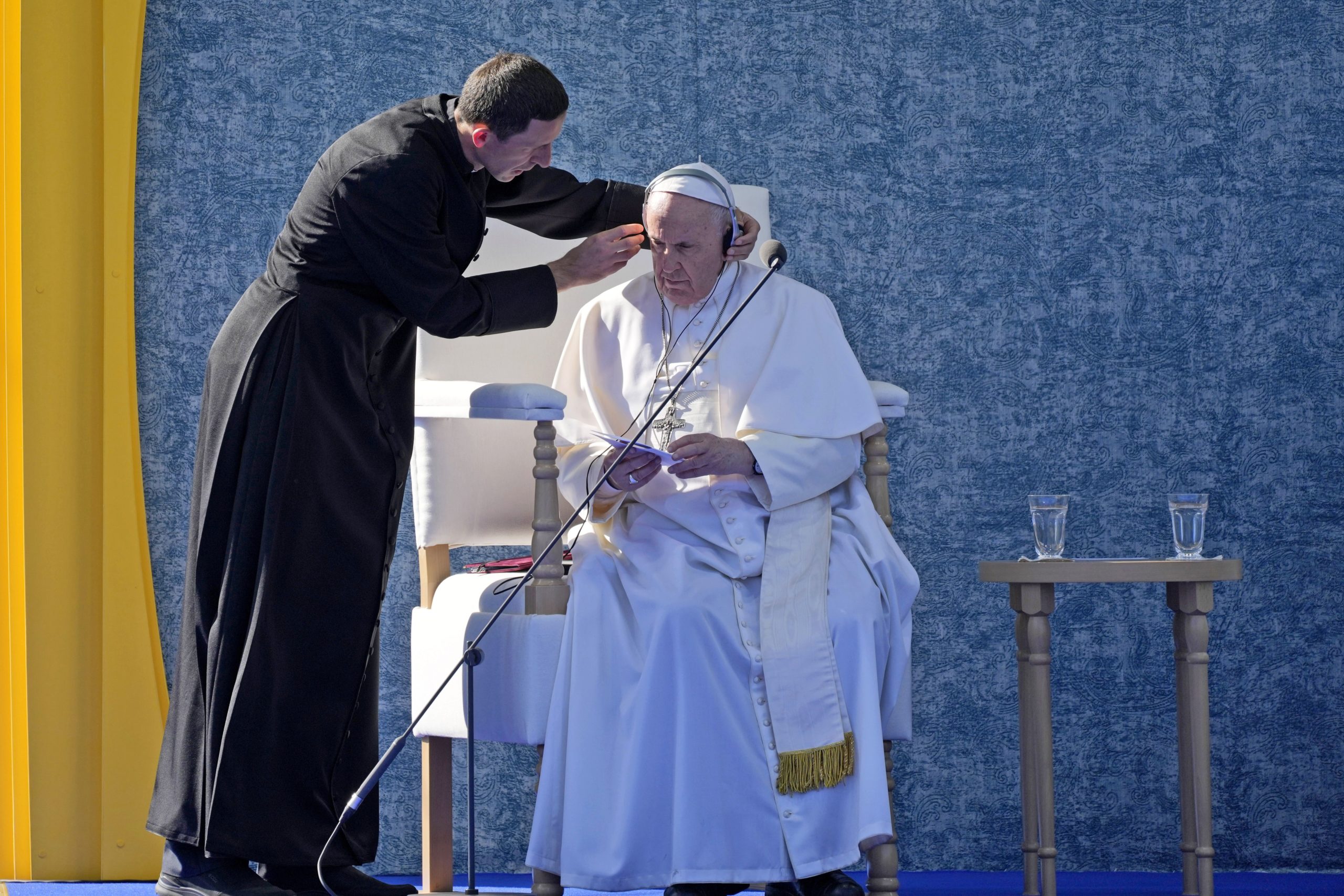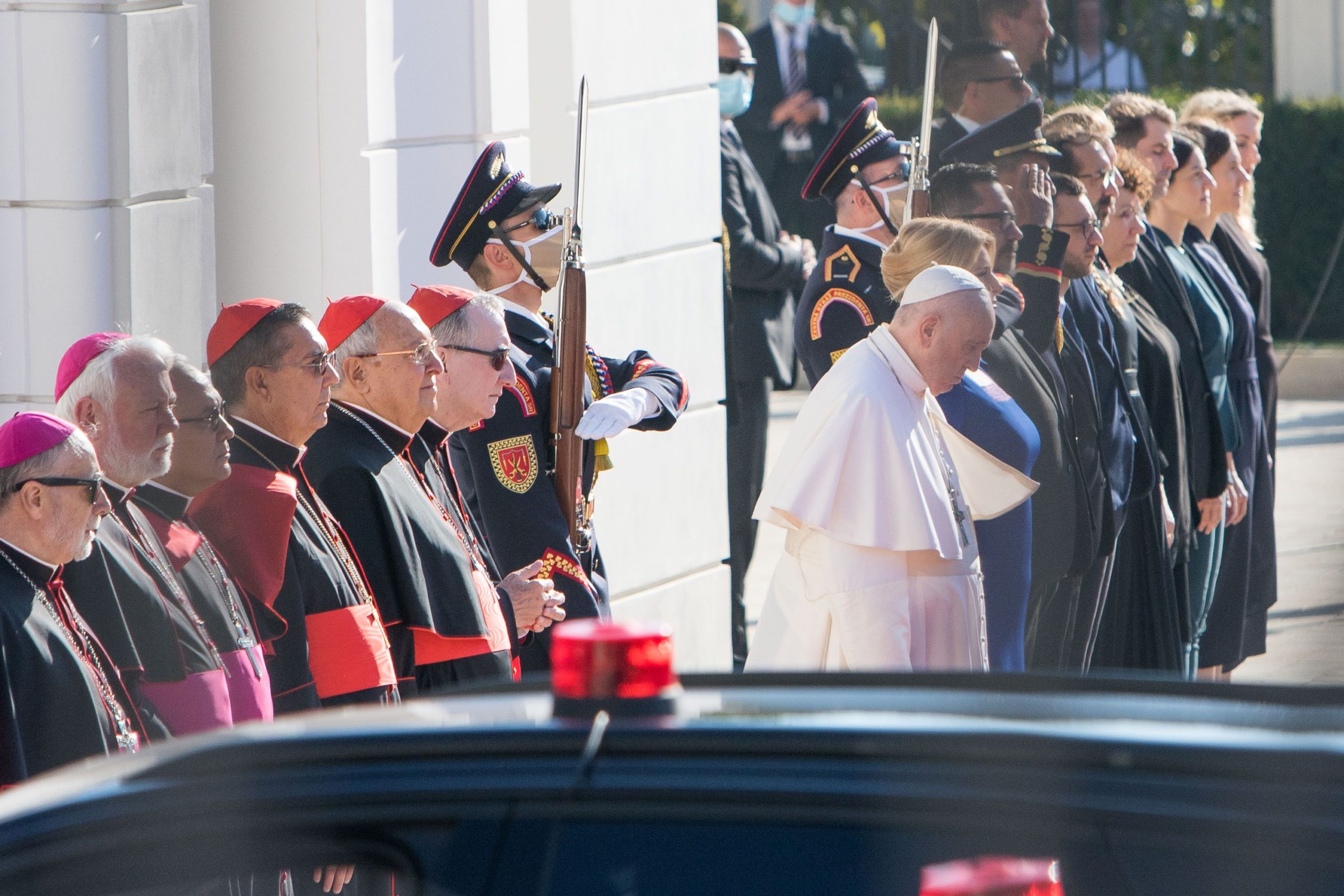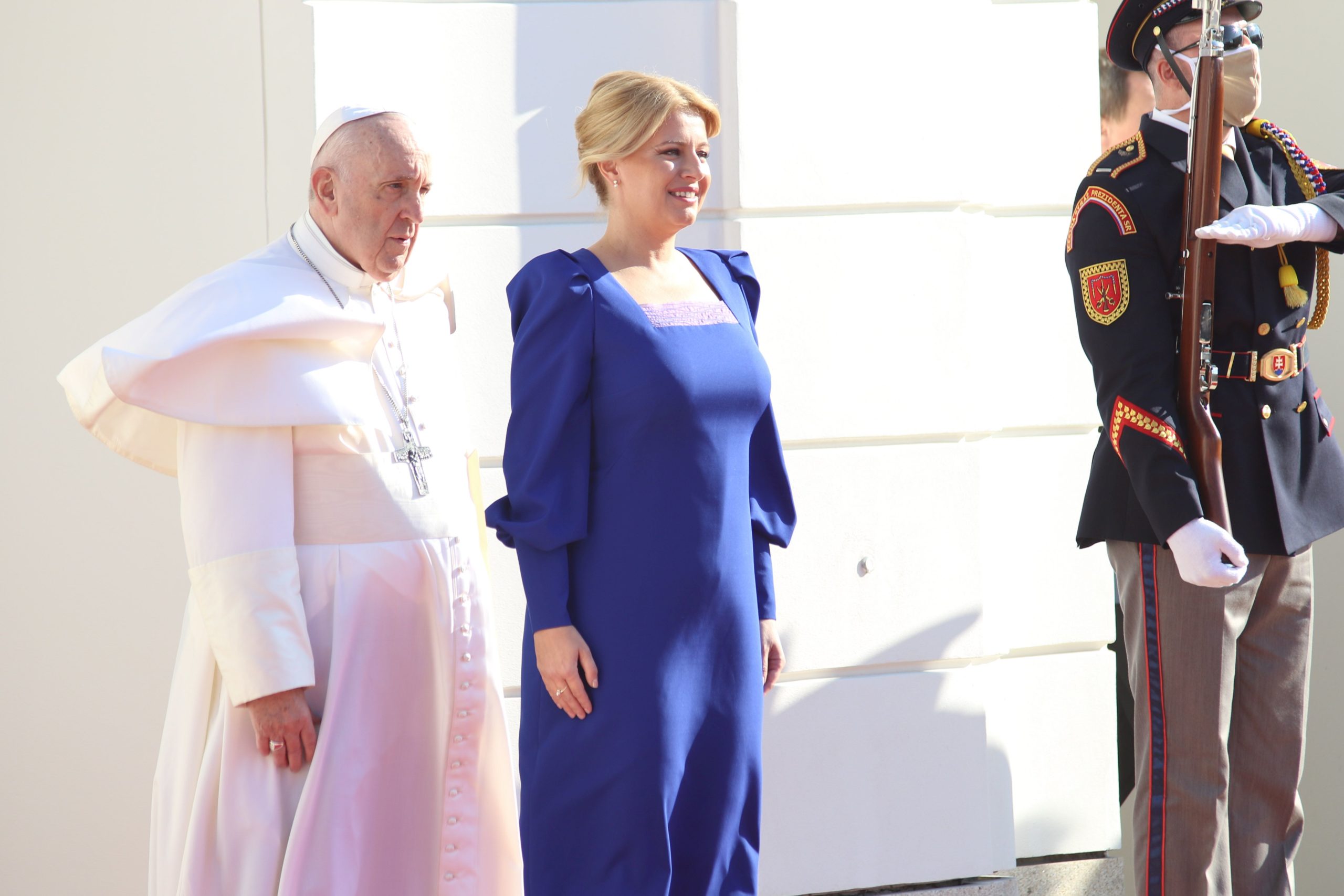 Kolóna pápea Frantika prichádza do Prezidentského paláca. Bratislava, 13. august 2021. Foto: SITA/¼udovít VaniherPápe Frantiek (vzadu vo vozidle) zdraví obyvate¾ov mesta poèas príjazdu do Prezidentského paláca. Bratislava, 13. august 2021. Foto: SITA/¼udovít VaniherPápe Frantiek zdraví obyvate¾ov mesta poèas príjazdu do Prezidentského paláca. Bratislava, 13. august 2021. Foto: SITA/¼udovít VaniherPápe Frantiek (ôsmy z¾ava) poèas privítacieho ceremoniálu na nádvorí Prezidentského paláca. Bratislava, 13. august 2021. Foto: SITA/¼udovít VaniherPápe Frantiek (druhý z¾ava v popredí) a prezidentka SR Zuzana Èaputová (v¾avo v popredí) poèas privítacieho ceremoniálu na nádvorí Prezidentského paláca. Bratislava, 13. september 2021. Foto: SITA/Alexandra ÈunderlíkováV popredí uprostred z¾ava: Pápe Frantiek a prezidentka SR Zuzana Èaputová poèas privítacieho ceremoniálu na nádvorí Prezidentského paláca. Bratislava, 13. september 2021. Foto: SITA/Alexandra ÈunderlíkováZ¾ava: Pápe Frantiek a prezidentka SR Zuzana Èaputová poèas privítacieho ceremoniálu na nádvorí Prezidentského paláca. Bratislava, 13. september 2021. Foto: SITA/Alexandra ÈunderlíkováPápe Frantiek (druhý z¾ava) a prezidentka SR Zuzana Èaputová (tretia z¾ava) poèas privítacieho ceremoniálu na nádvorí Prezidentského paláca. Bratislava, 13. september 2021. Foto: SITA/Alexandra ÈunderlíkováZ¾ava: Pápe Frantiek a prezidentka SR Zuzana Èaputová poèas privítacieho ceremoniálu na nádvorí Prezidentského paláca. Bratislava, 13. september 2021. Foto: SITA/Alexandra ÈunderlíkováZ¾ava v popredí: Bratislavský arcibiskup Stanislav Zvolenský a pápe Frantiek poèas privítacieho ceremoniálu na nádvorí Prezidentského paláca. Bratislava, 13. september 2021. Foto: SITA/Alexandra ÈunderlíkováPope Francis’ aide adjusts the pontiff’s headphones during a meeting with government authorities, members of civil society and the diplomatic corps, in the garden of the Presidential Palace, in Bratislava, Slovakia, Monday, Sept. 13, 2021. Francis is on a four-day visit to Central Europe, in Hungary and Slovakia, in his first big international outing since undergoing intestinal surgery in July. (AP Photo/Gregorio Borgia)Pope Francis’ shakes hands with Slovakian President Zuzana Caputova, right, during a meeting with government authorities, members of civil society and the diplomatic corps, in the garden of the Presidential Palace, in Bratislava, Slovakia, Monday, Sept. 13, 2021. Francis is on a four-day visit to Central Europe, in Hungary and Slovakia, in his first big international outing since undergoing intestinal surgery in July. (AP Photo/Gregorio Borgia)