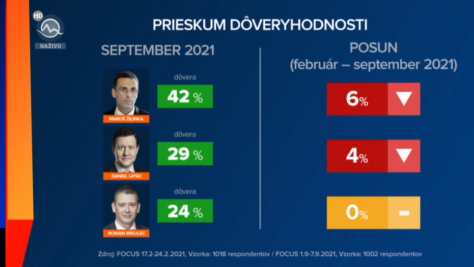 A 2021 februárjában készített felméréssel összehasonlítva 6 százalékponttal csökkent a Žilinkába vetett bizalom.