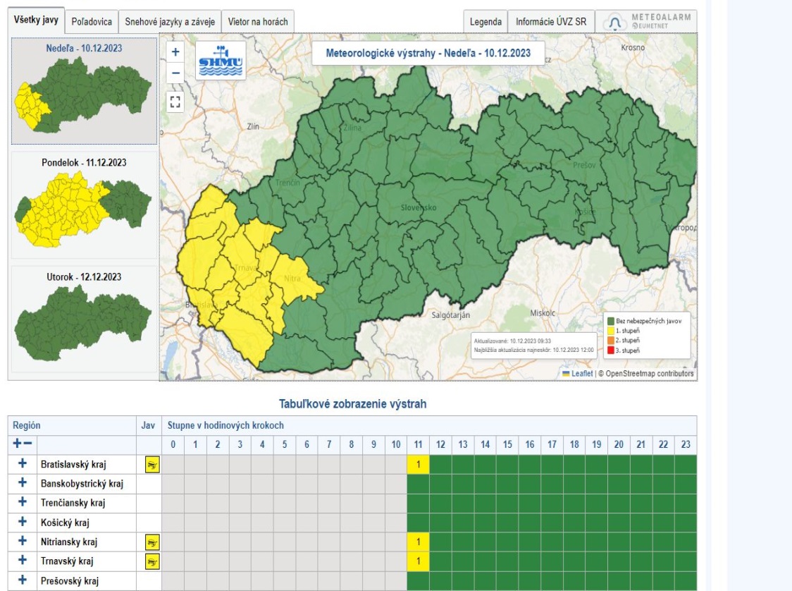 Az ezzel kapcsolatos elsőfokú figyelmeztetés teljes Pozsony és Nagyszombat megyére vonatkozik, ezen kívül a Nyitrai és a Vágsellyei járásra is