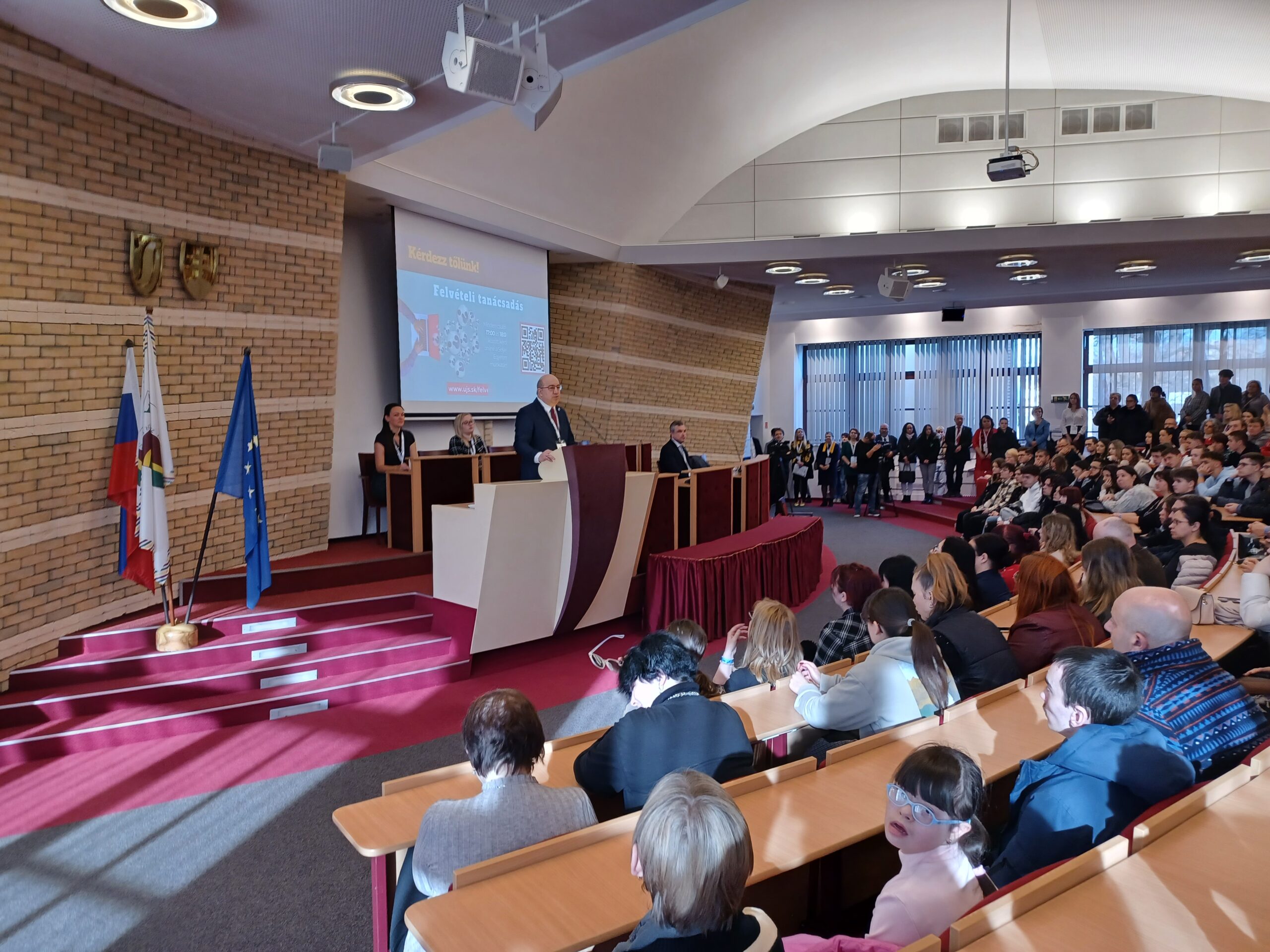 A komáromi Selye János Egyetem 2024. február 14-én Nyílt Napot tartott a felsőoktatás iránt érdeklődő középiskolás diákok számára. A rendezvényen többszáz fiatal jelent meg, ami ígéretes tanévkezdést jelenthet az elkövetkező szeptemberben. A nap folyamán az érdeklődők betekintést nyerhettek az egyetem pezsgő életébe, megismerhették az egyes karokat, valamint a tanulmányi programokat.