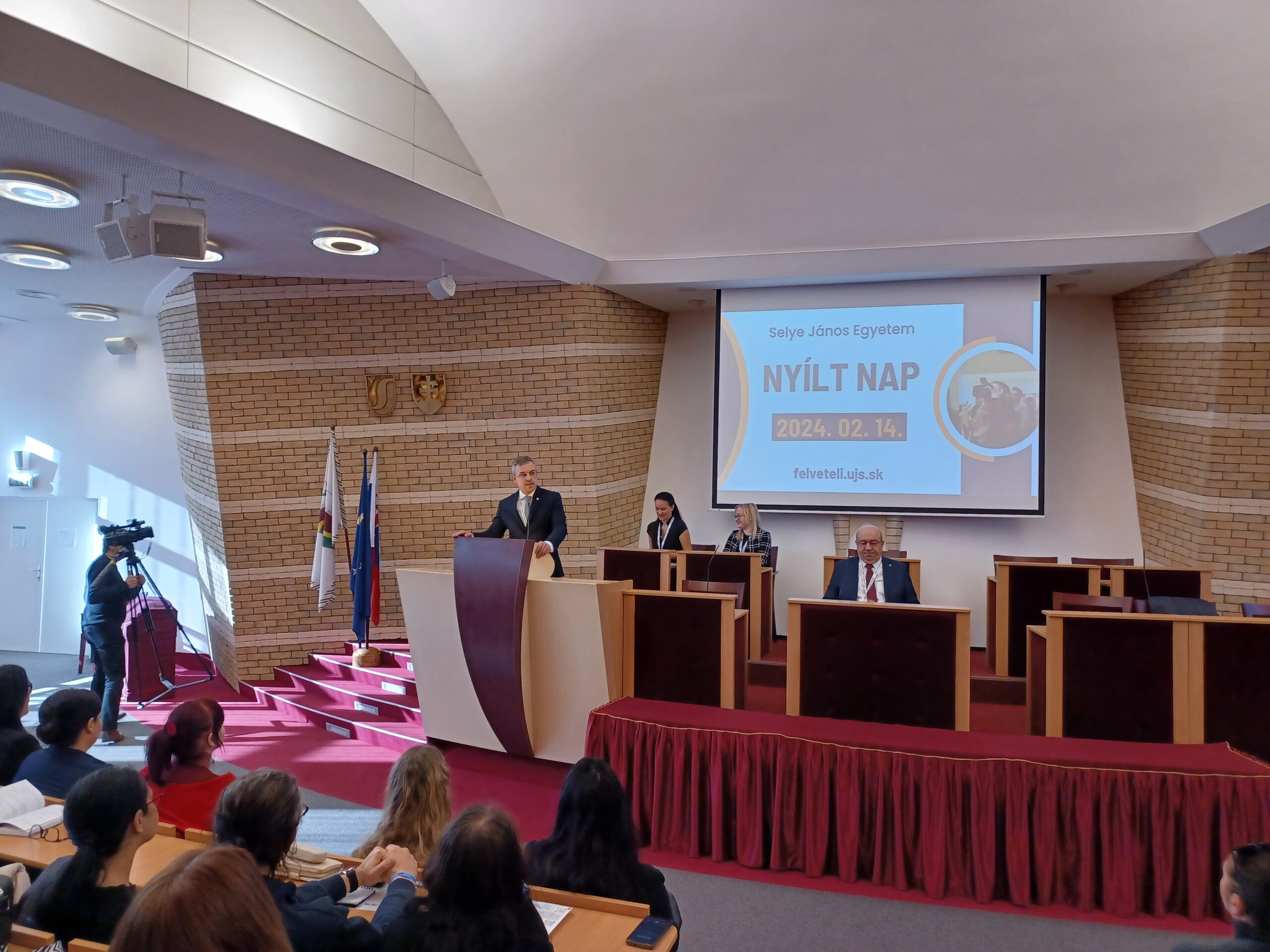 A rendezvény a Selye János Egyetem Konferencia-központjában kezdődött, mely zsúfolásig megtelt az érdeklődést mutató fiatalokkal. A jelenlévőket Juhász György, a Selye János Egyetem rektora köszöntötte, majd tömören összefoglalta az intézmény múltját és jelenét, annak küldetését, felsorolva azokat az akadémiai jellegű tényeket, ahol a Selye János Egyetem nagyon jó eredményeket ér el.