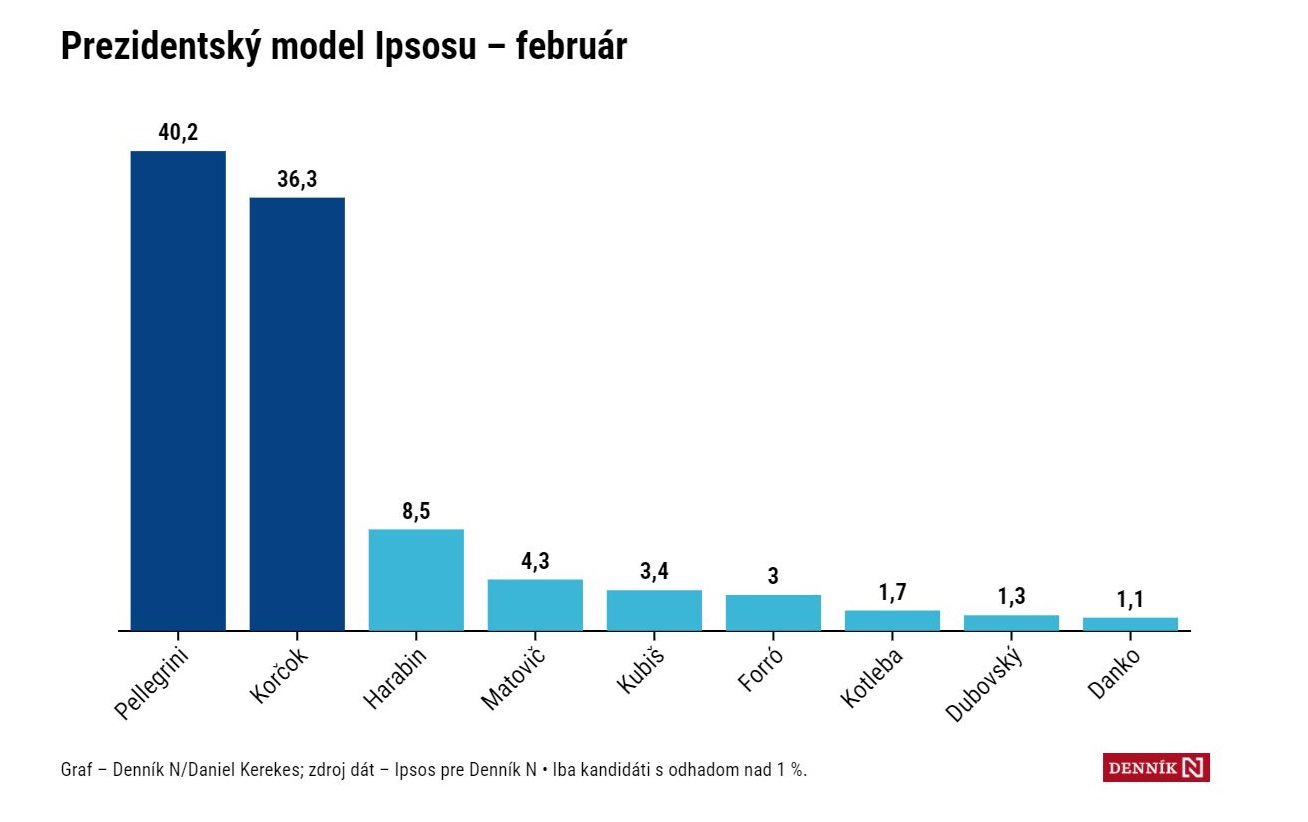 A Hlas elnökére és a parlament jelenlegi elnökére a válaszadók 40,2 százaléka szavazna. A második helyen 4 százalékkal lemaradva a liberális, progresszív jelölt, Ivan Korčok korábbi külügyminiszter végezne 36,3 százalékkal. A harmadik helyen az IPSOS szerint Štefan Harabin szerepel 8,5 százalékkal.