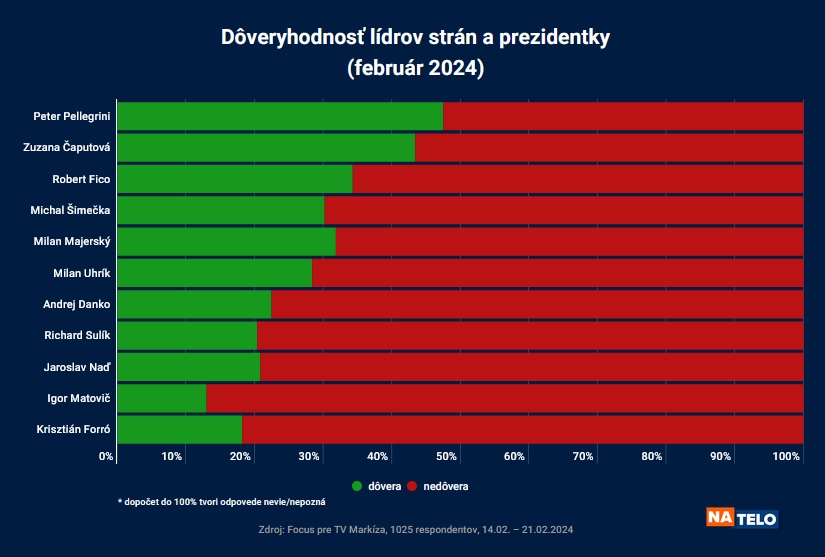 Zuzana Čaputová rendszeresen az első helyen áll a bizalmi felmérésekben. Ebben az esetben azonban az ügynökség 43 százalékon mérte a választók bizalmát. A válaszadók 56 százaléka bizalmatlan vele szemben.