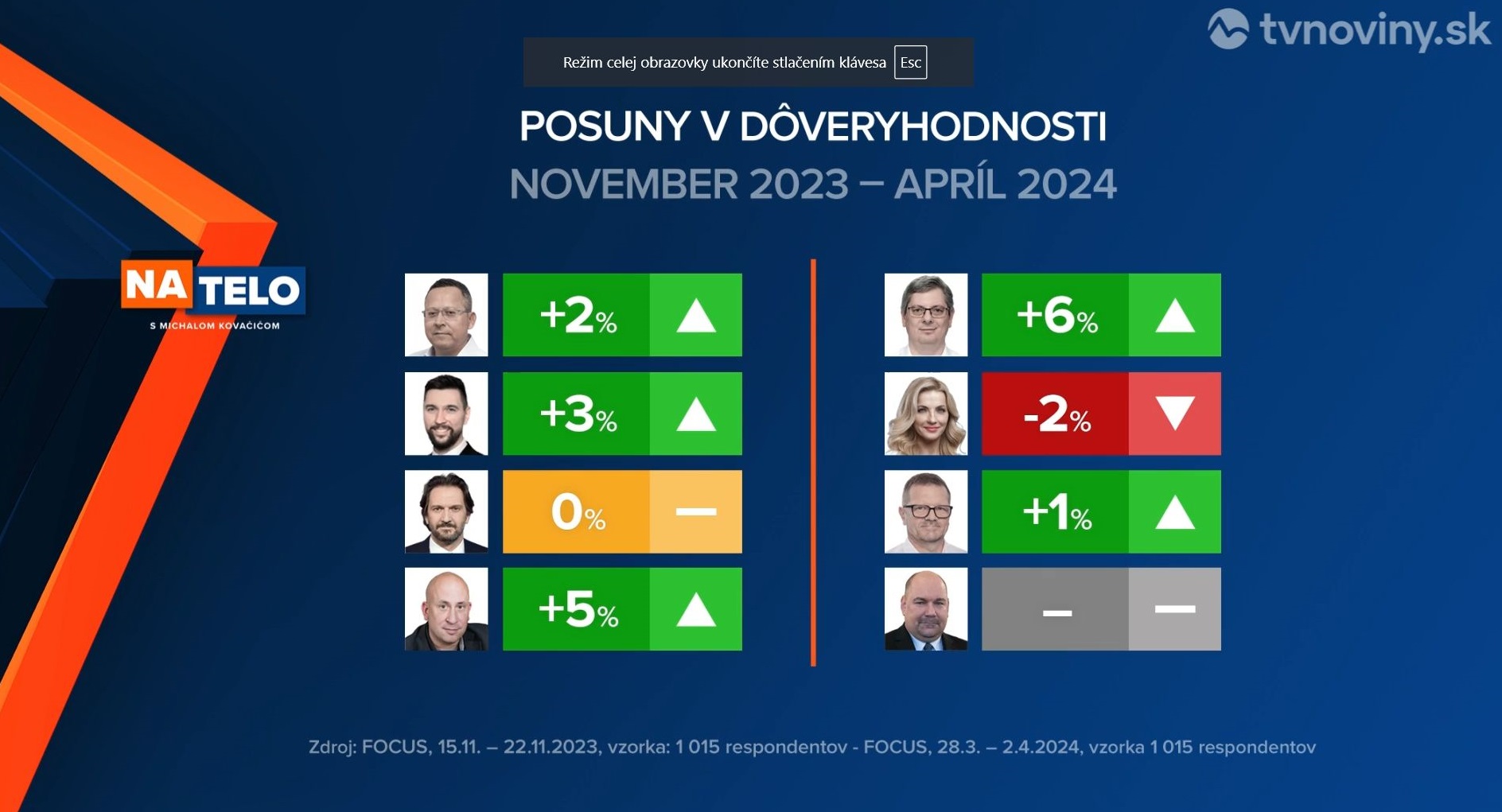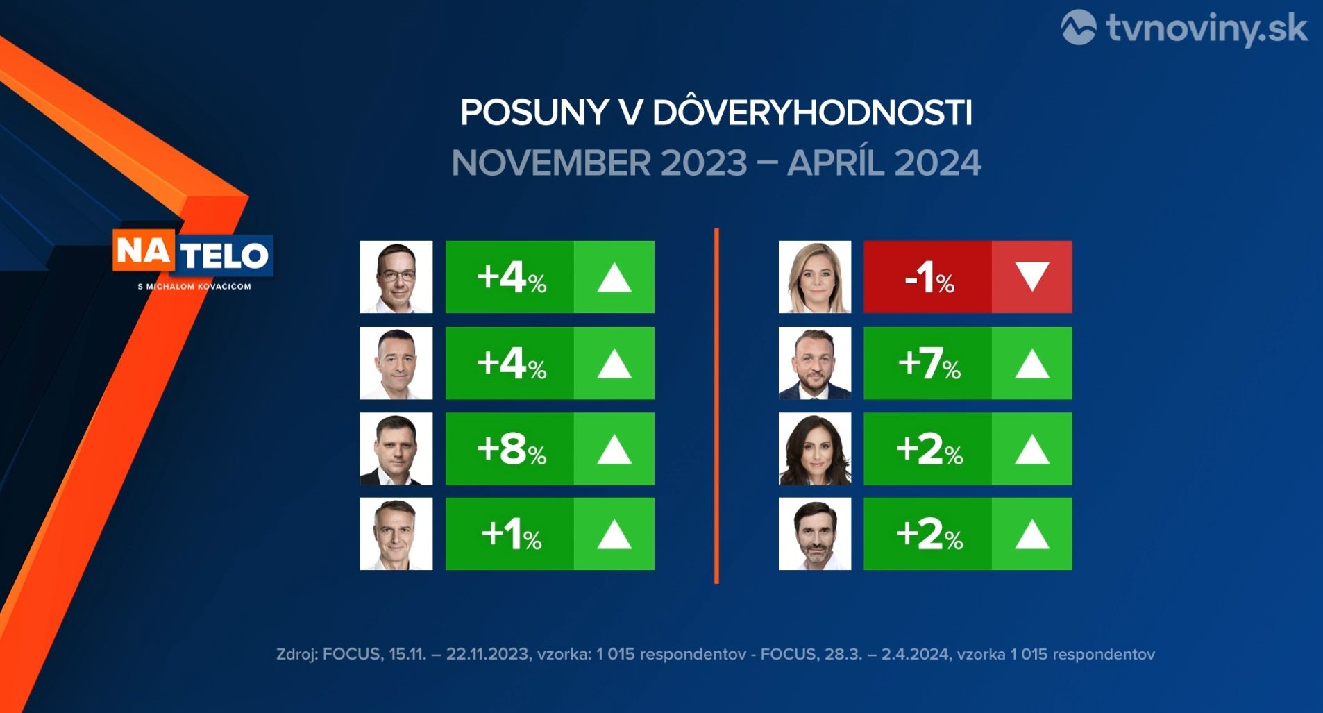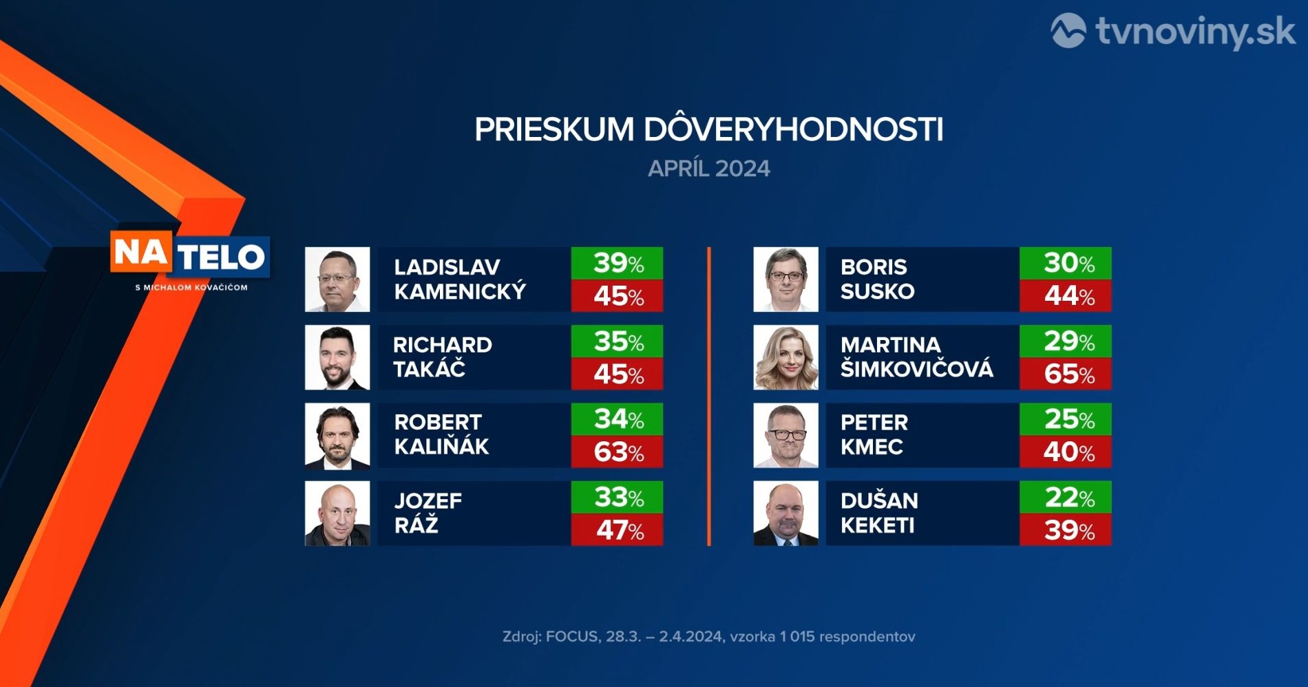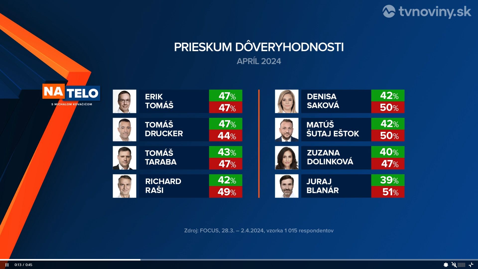 A Focus március 28. és április 2. között 1015 személy megkérdezésével azt mérte, hogy ki a legmegbízhatóbb miniszter az országban. A reprezentatív felmérés eredménye szerint az első helyen a Hlas két minisztere, Erik Tomáš szociális ügyi és Tomáš Drucker oktatásügyi miniszterek végeztek.