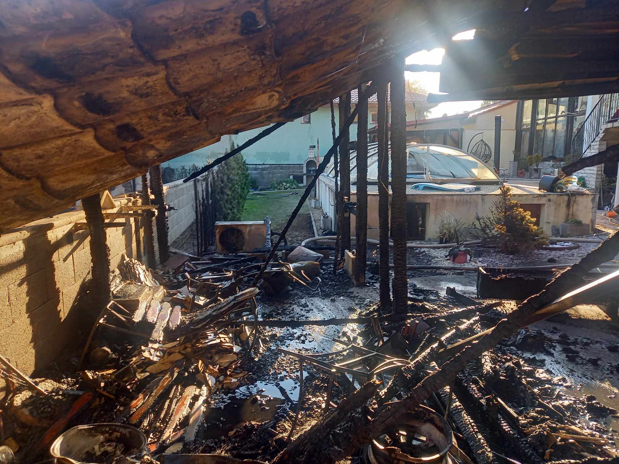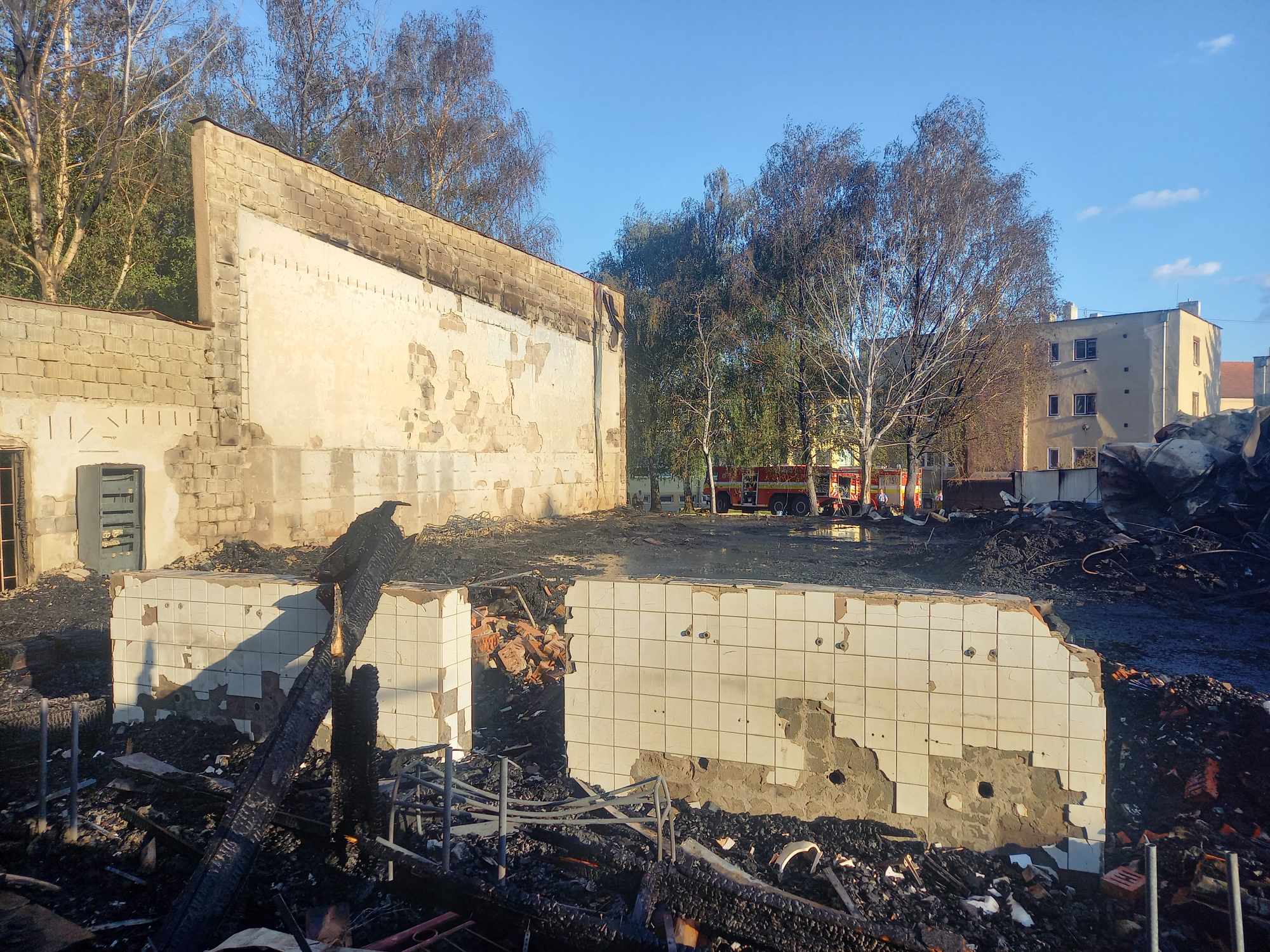 Az alábbi képeken is látható, hogy a tűz a szomszédos épületekben is kárt tett, mi több, az egyik, a T-18-as tornaterem előtt parkoló személygépkocsi is kiégett.