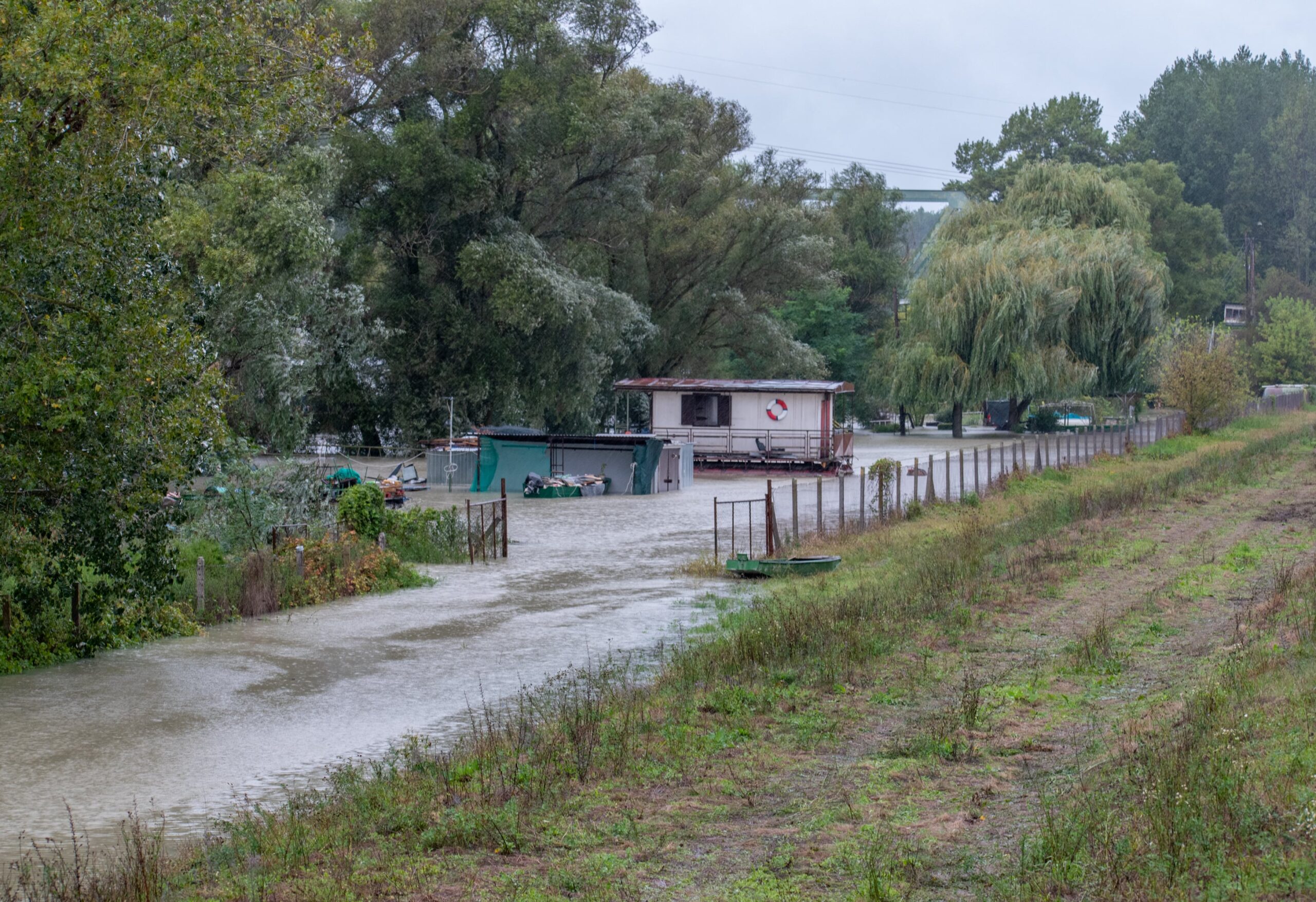 Medvén a helyzet jóval látványosabb. Ott a kikötő területe teljesen víz alá került. A töltésoldalban fáradt fecskék repkednek – az eső miatt nem tudtak még elköltözni, sok példány elpusztul a gyengeség, élelemhiány, hideg és kimerülés miatt. A felvételek készültekor a vízszint 683 centiméter volt. Tetőzés itt kedden délután 13 óra körül várható.