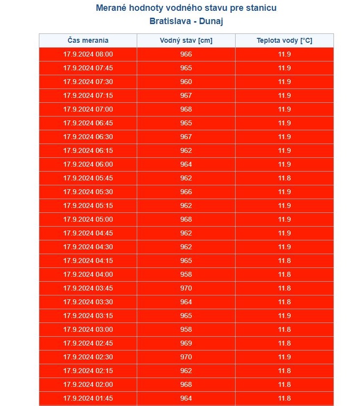 A Duna vízszintje Dévényben és Pozsonyban az árvízaktivitás 3. szintjén van. Hétfő Dévényben megközelítőleg 60 cm, Pozsonyban pedig 50 cm hiányzott a tetőzéshez. Kedden reggel 7 órakor 968 centiméter volt a Duna vízszintje.