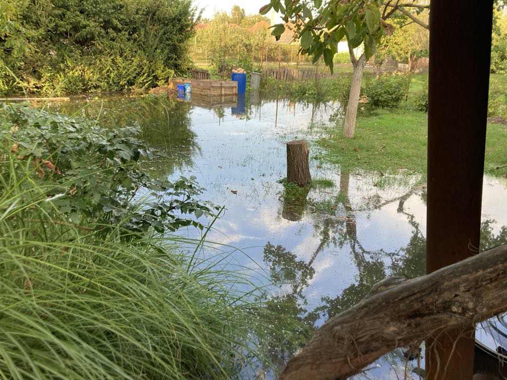 Nemcsak az útmenti területek kerülnek egyre inkább víz alá, hanem az utcákon és a kertekben is áll a víz.