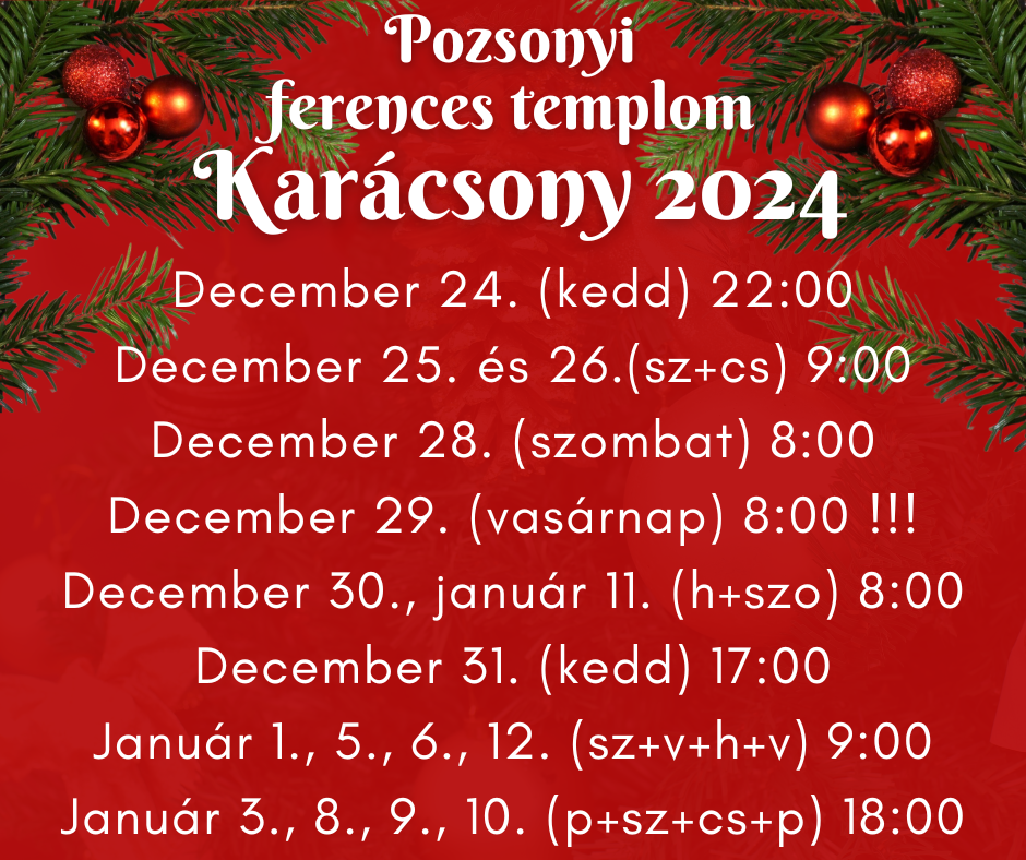Mint ahogyan évközben vasárnapokon és hétköznapokon egyaránt, úgy a közelgő karácsonyi ünnepek alkalmával is magyarul imádkozhatnak a Pozsonyban élő, a városban dolgozó, vagy az ide vendégként és turistaként érkező hívek, elsősorban a belvárosi ferences templomban celebrált szentmiséken.
