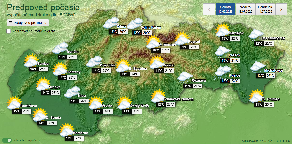A legmagasabb nappali hőmérséklet 22 és 27 Celsius-fok között alakul, azonban a hűvösebb térségekben – a Zsolnai kerületben, Felső-Szepességben és Gömör vidékén – inkább 18–22 fok közötti értékekre számíthatunk.