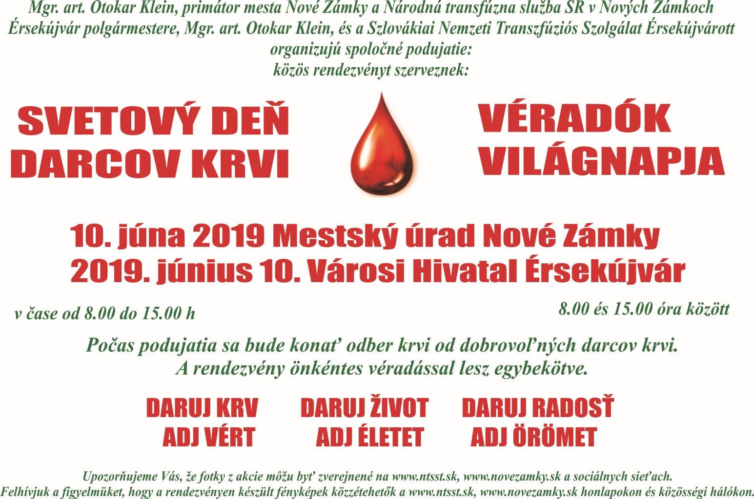 Érsekújvárban június 10-én, hétfőn önkéntes véradást tartanak.