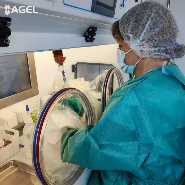 „Ezért az előkészítés speciális izolátorban, aszeptikus (fertőzésmentes – szerk. megj.) körülmények között történik. Az izolátor a steril gyógyszerformák előállításának legújabb technológiájához tartozik, és kifejezetten a mi kórházunk számára készült Nagy-Britanniában“