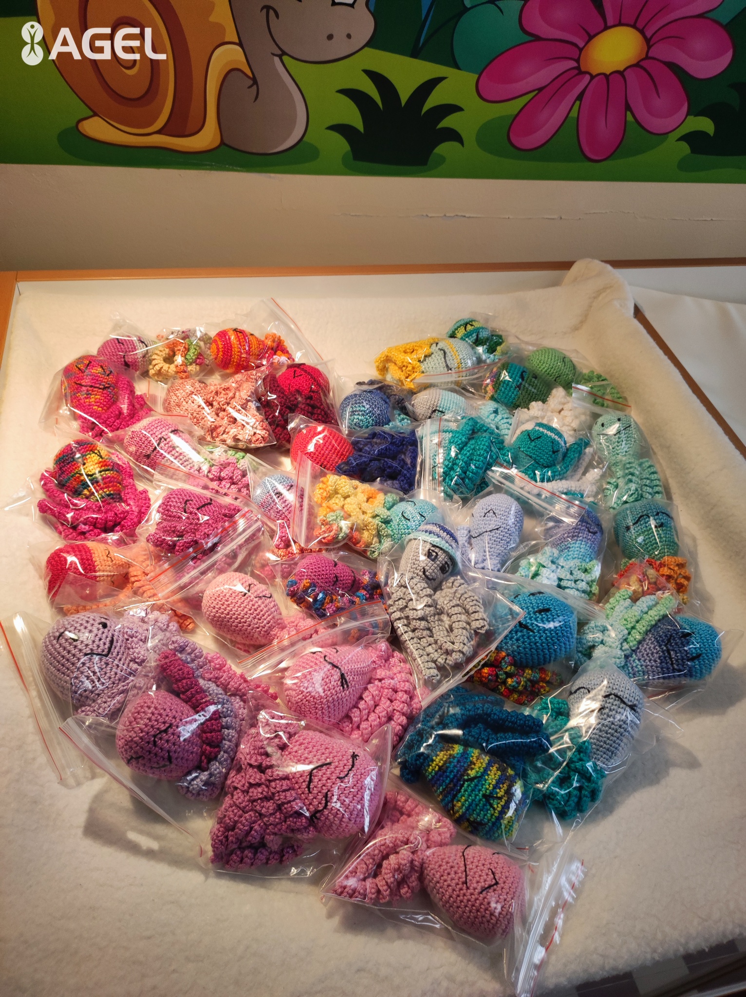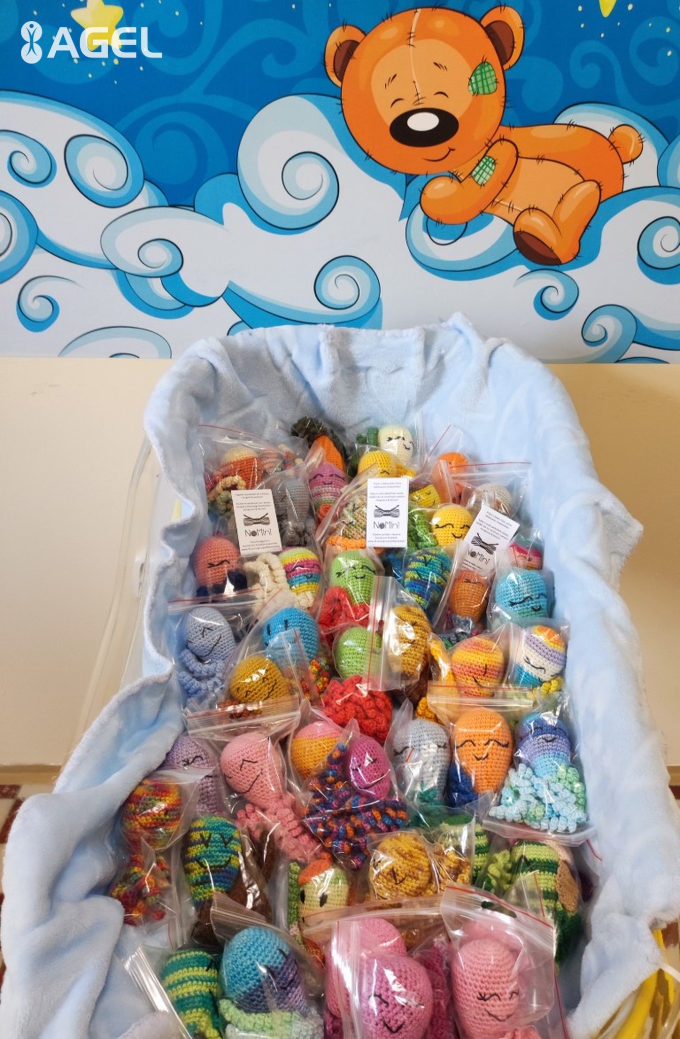 A komáromi AGEL kórház szép hagyományokkal rendelkezik. Két fiatal nő, Zsófia és Noémi 2017-től horgolt polipokat hoznak az újszülött osztályra, és azóta is folytatják ezt a kedves hagyományt. Az eredeti szándék az volt, hogy ne csak a koraszülötteknek segítsenek, hogy kedves társuk legyen, hanem az összes többi babának és anyukájuknak is örömet szerezzenek.