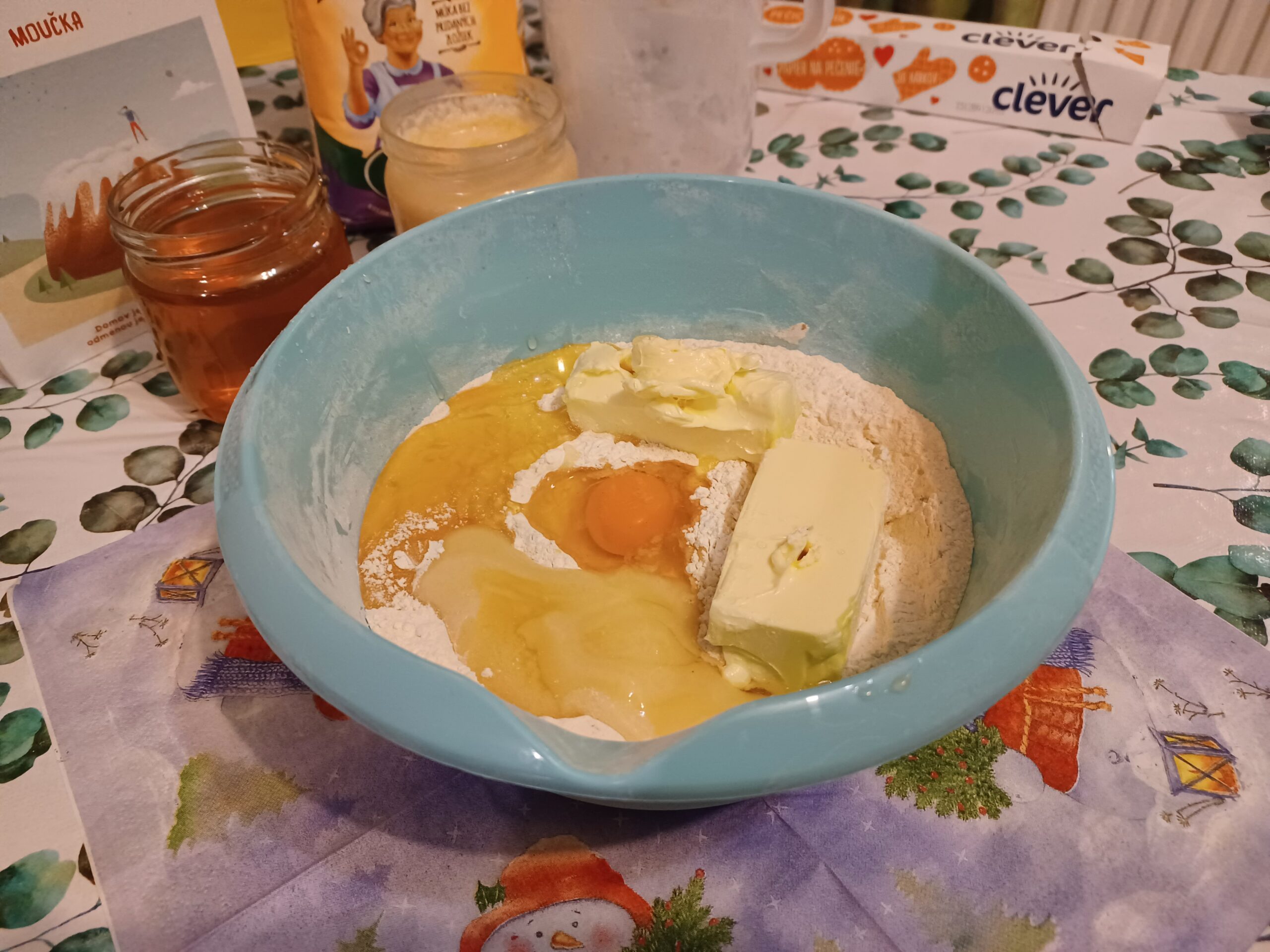 Egy nagyobb tálba beleszórom az 1 kg sima liszt felét, én nem szoktam mérni, ha elég jó a szemmértéked, neked sem kell. A porcukrot mérőpohárban adagolom ki, ehhez sem kell patikamérleg. Jöhet bele a szódabikarbóna, meg a mézeskalács fűszerkeverék. Ha ez utóbbi nincs otthon, magad is előállíthatod, fő összetevői az őrölt fahéj és a szegfűszeg. A bolti azonban lényegesen több fűszert tartalmaz.