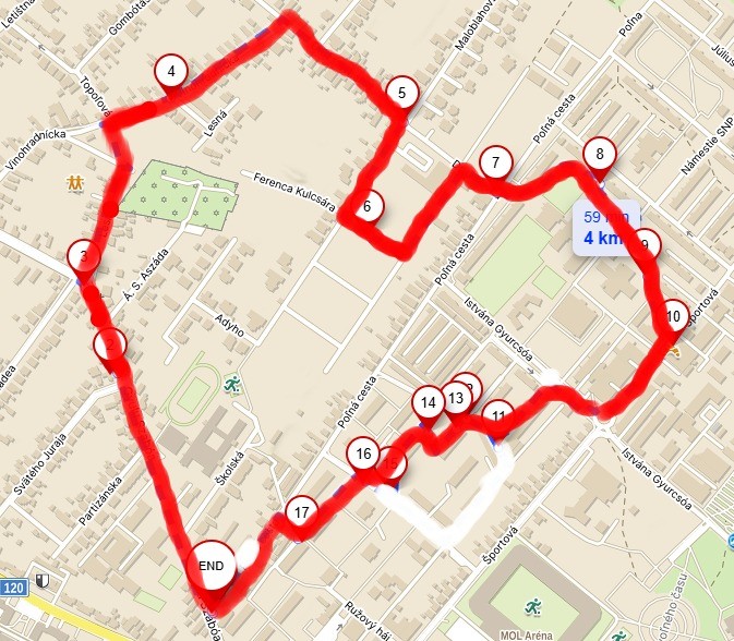 - Start és cél: Rózsaligeti Balkán Fagyizó (Ružový háj – Balkánska zmrzlina)